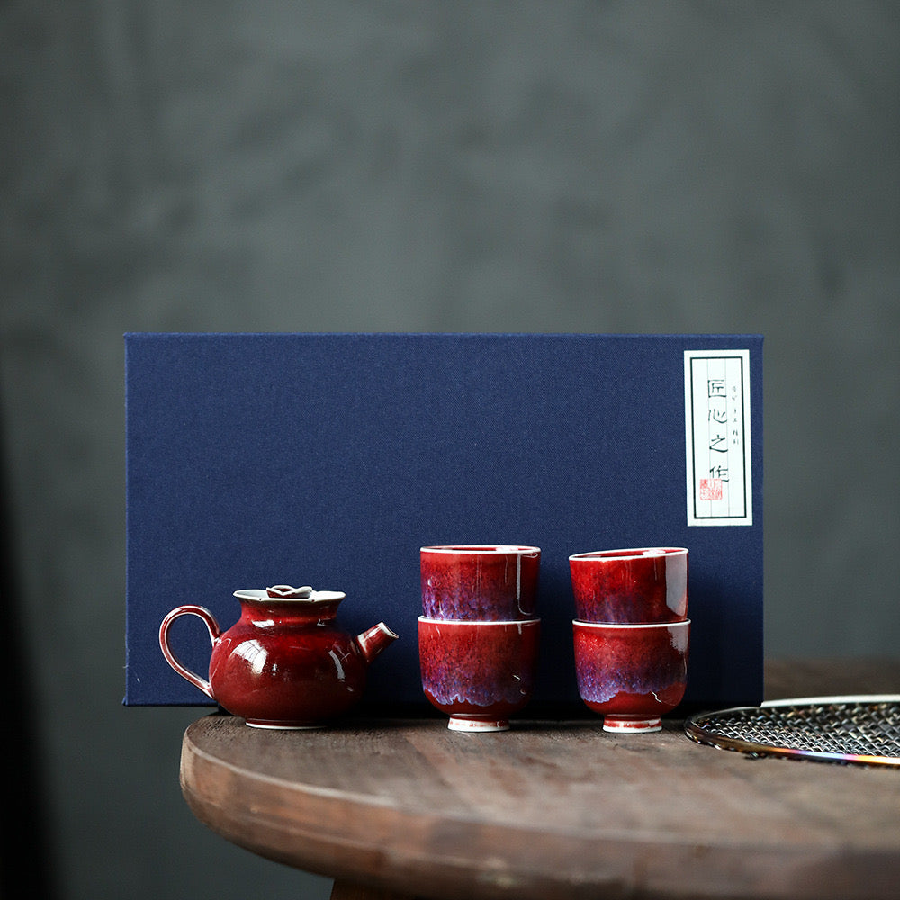 lang kiln red luxurious tea set: escape from the museum